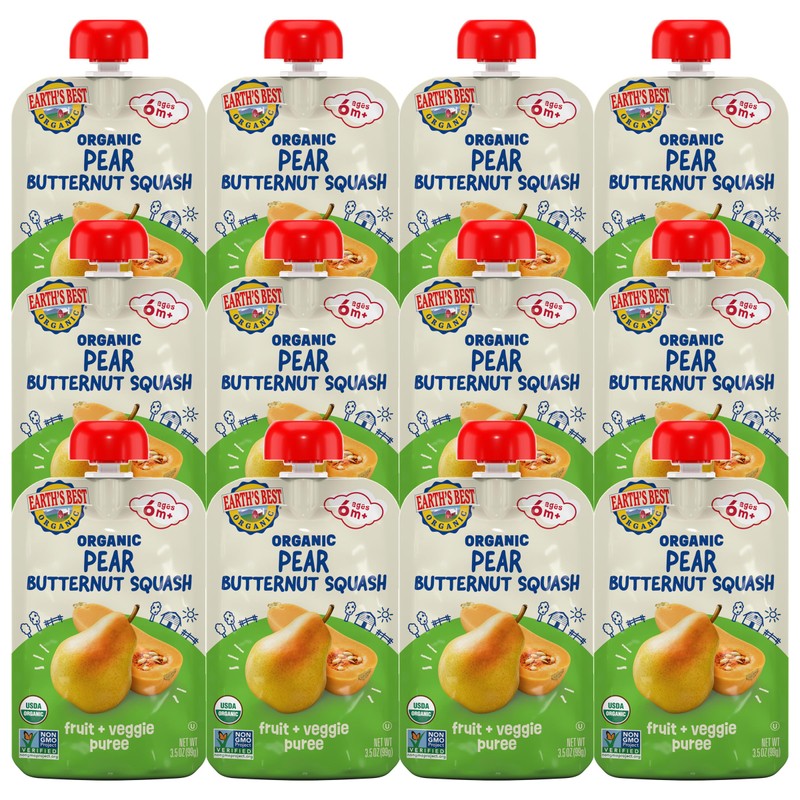 - ORGANIC BUTTERNUT SQUASH AND PEAR PUREE POUCH: Includes twelve 3.5 oz pouches of Earth's Best Organic Fruit and Vegetable Puree