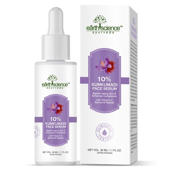 Earth Science Ayurveda Ayurvedic10% Kumkumadi ( Saffron) Night Face Serum with Vitamin C & Peptide for Men & Women for Skin Brightening Pack of 1