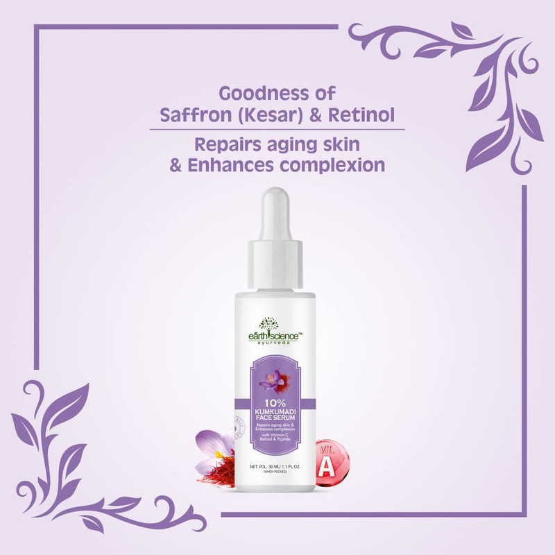 Earth Science Ayurveda Ayurvedic10% Kumkumadi (Saffron) Night Face Serum with Vitamin C & Peptide for Men & Women for Skin Brightening Pack of 1
