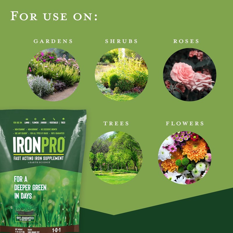 Earth Science Iron Pro Fast Acting Lawn Garden Iron Supplement by Earth Science – Deep Green Results Grass Flowers Vegetables & Shrubs Non-Staining Non-Burning Easy Apply Formula Covers 1600 Sq. Ft