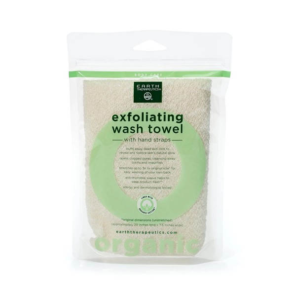 Earth Therapeutics Organic Cotton Exfoliating Wash Towel with Straps