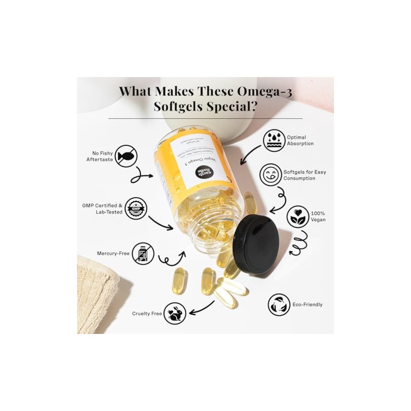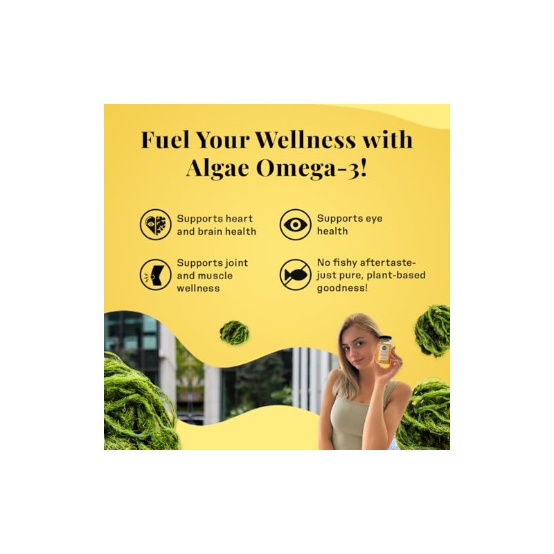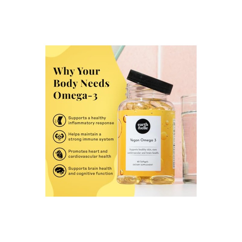 🌟 ⭐ EARTH&ELLE Earth & Elle Algae Omega 3 Suplemento - Omega 3 Vegano - Suplemento Vegano Omega 3 Con Aceite De Algas Y Dha Vegano - Ayuda A Apoyar La Salud Del Corazón Y El Cerebro 1000 Mg Por Porción - ⭐ 🌟
