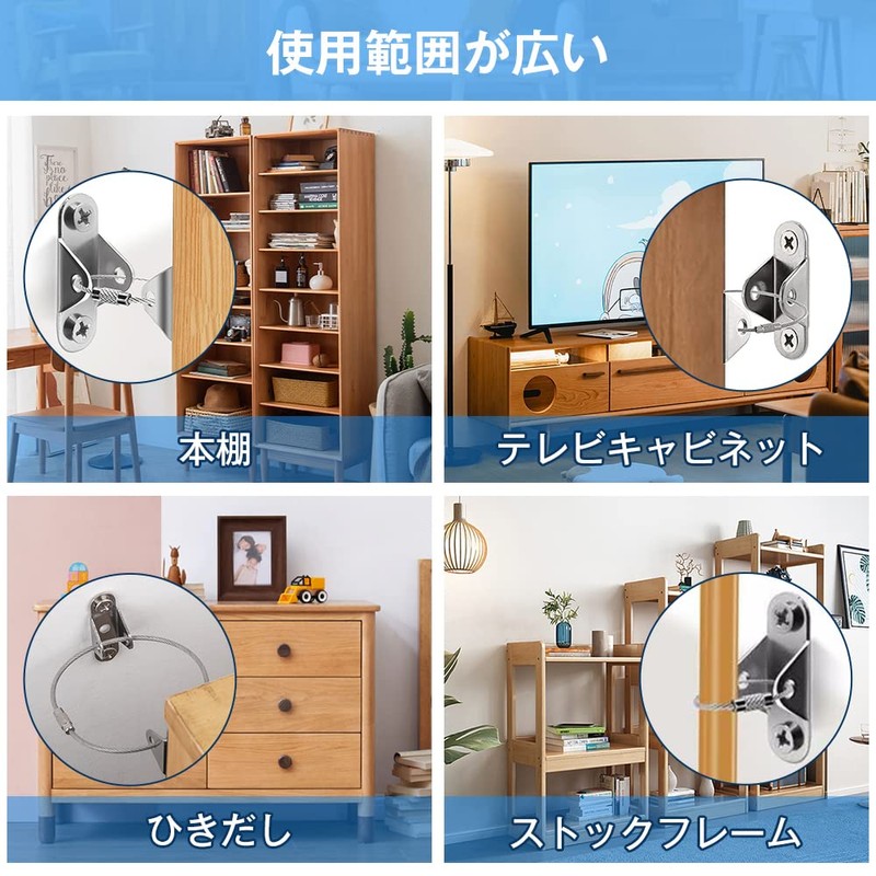 Earthquakeproof Hardware, Fall Prevention, Furniture Fall Prevention, Earthquake Prevention, Fire Prevention, Set of 4, Fall Prevention, Furniture, Disaster Prevention, Easy Installation, Earthquakeproof, Fixed, TV, Refrigerator, Bookshelf, Sofa, Tension