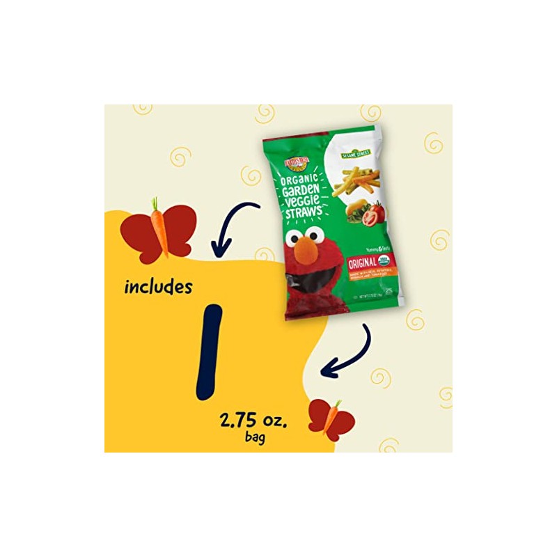 🌟 ⭐ Earth's Best Aperitivos orgánicos de Plaza Sésamo para niños, popotes vegetales de jardín, original, bolsa de 2.8 onzas ⭐ 🌟