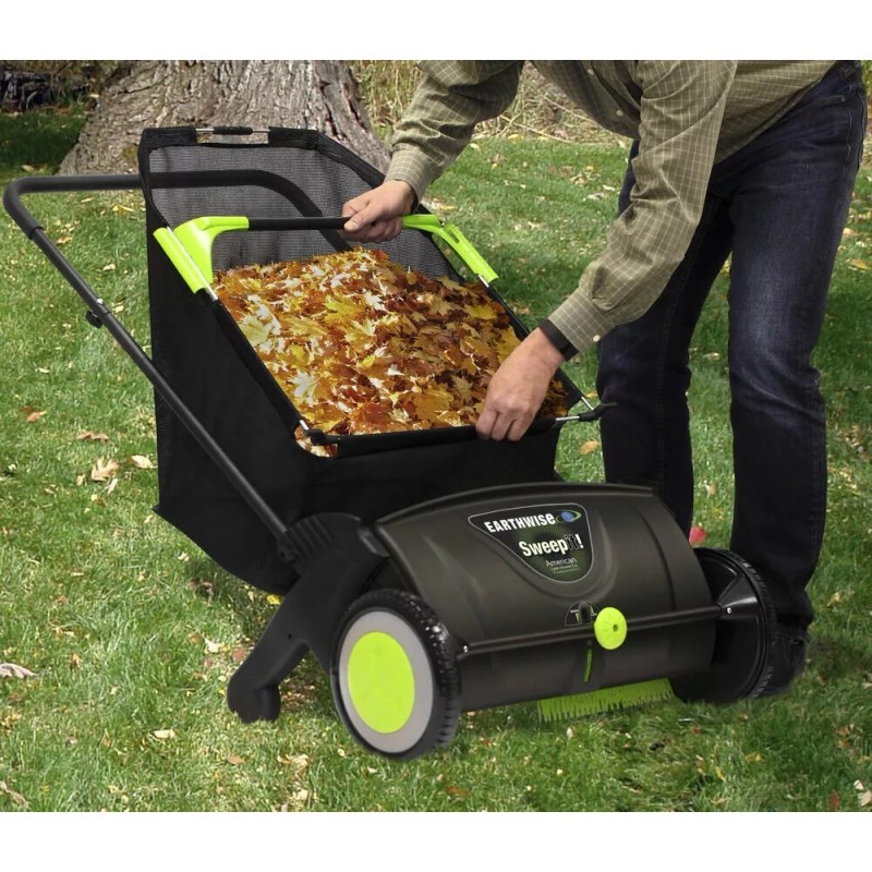 Earthwise 21" Foldable Large Garden Lawn Sweeper Adjustable Height 26 Gal Capacity