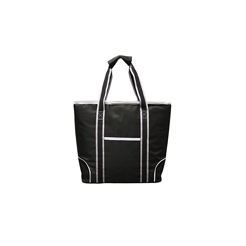 Earthwise Insulated Grocery Bag Shopping Cooler Tote Black with Silver & White Trim Large Capacity w/Zipper Closure and Front Pocket Thermal Cooler for Hot or Cold Food 18.5 W x 13.5 H (Black/Silver)