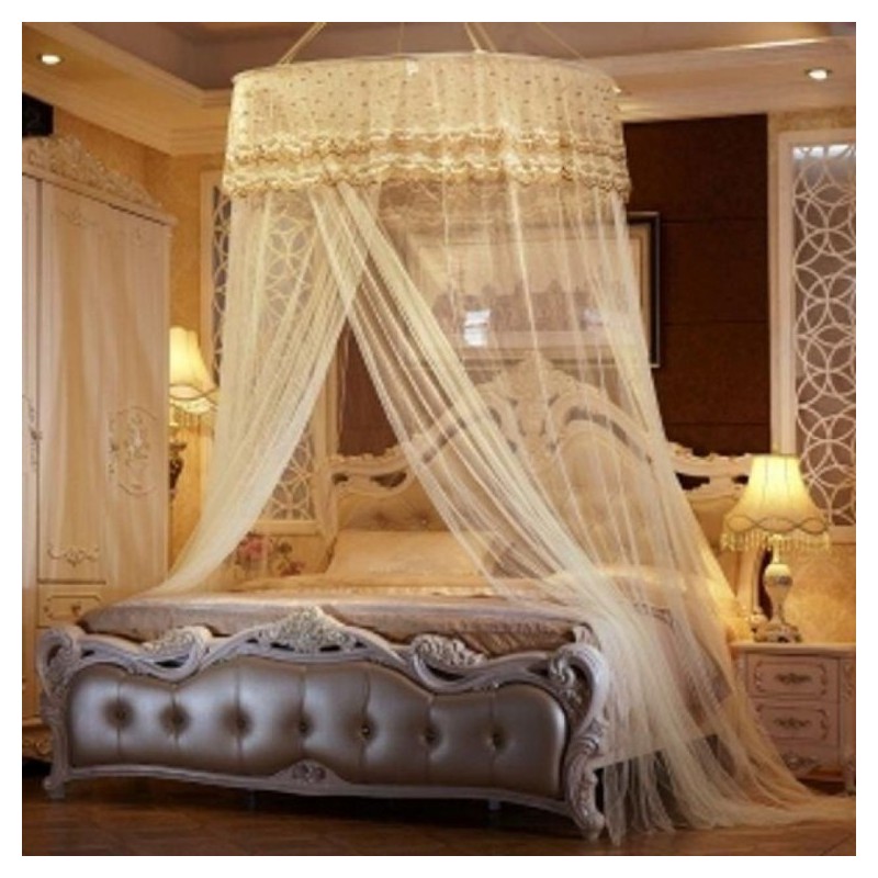 EAS Light & Airy Bed Canopy Mosquito Net - Beige with Lace Trim Lace Mosquito Net