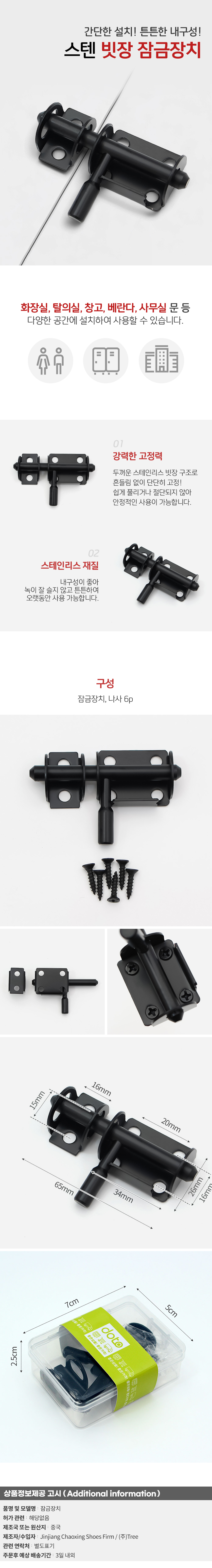 EAS Sturdy Stainless Steel Sliding Door Auxiliary Bolt Lock 2ea