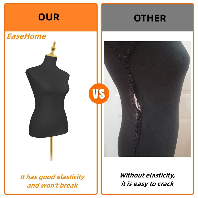 This mannequin dress form is made of high quality solid foam body with fabric cover. It is tough and durable so it can bear more clothes than others. If it gets dirty, you can simply wash it and dry it. It won’t hurt the product.