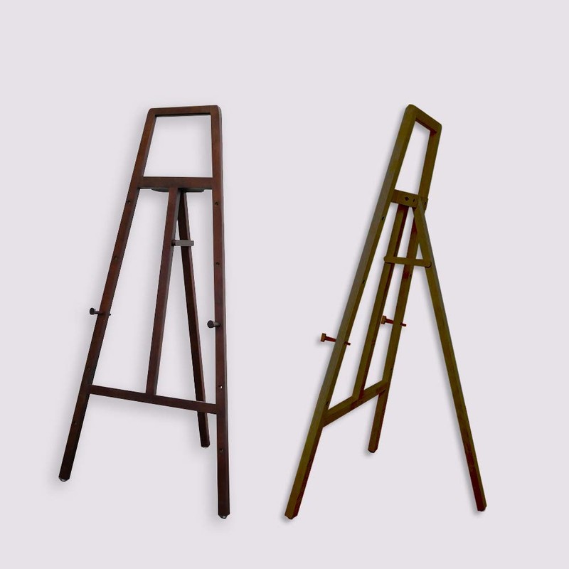 - Features: This wooden easel (tripod) is very light, and requires no assembly. Great for displaying posters, photos, or displaying a variety of framed artwork at trade shows. It is also useful when you want to stand up menu boards such as restaurants, cafes, or as a welcome board. Widely used for individuals, schools, businesses and more. The packaging is made of a tea box