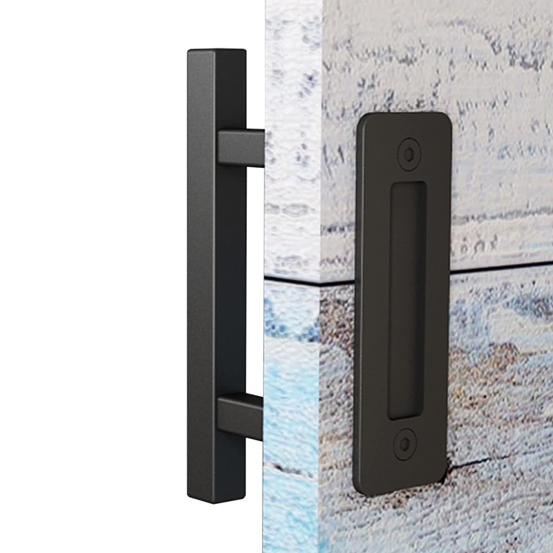 EaseLife 10" Sliding Barn Door Pull Handle with Flush Hardware Set, Double Sided, Heavy Duty, Square, Matte Black Powder Coated Finish, Easy Install
