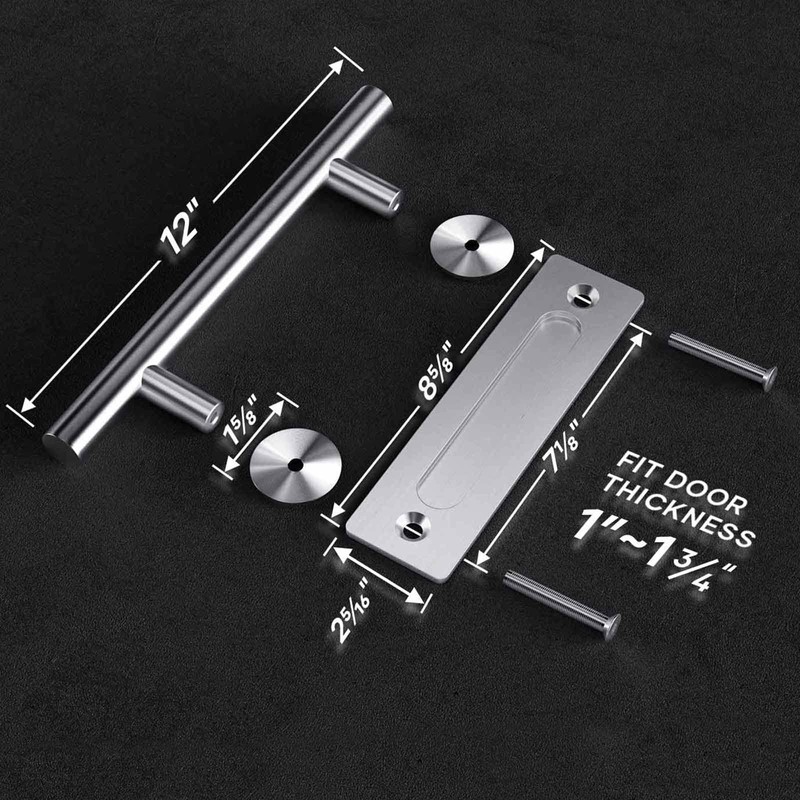 EaseLife 12" Stainless Steel Sliding Barn Door Handles and Pulls Flush Hardware Set, Double Sided, Brushed Finish, Easy Install