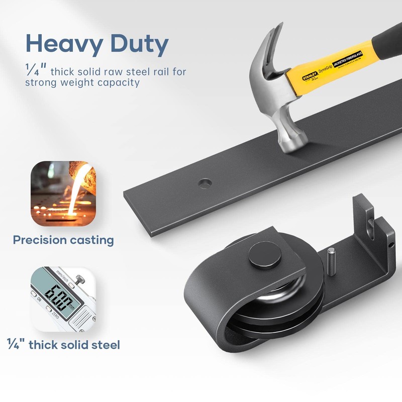 - Bifold Barn Door Solid steel,fine black powder coated surface,anti-corrosion ensures years of beauty and longevity.SLIDE LIKE BUTTER -- Ball bearing roller slide smoothly and quietly,Tested Beyond 100,000 Rolls.All bifold barn door hardware kit have been multiple inspected before on market.