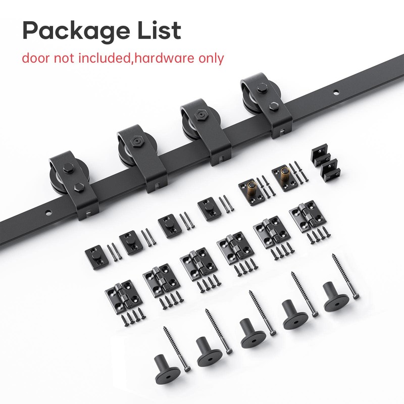- 2x32" Rail,4x Rollers,4x Roller Rotating Base,2x Roller Fixator,5x Rail Support,6x Hinge,2x Floor Guide,1x Sealing Strip. DOOR NOT INCLUDED