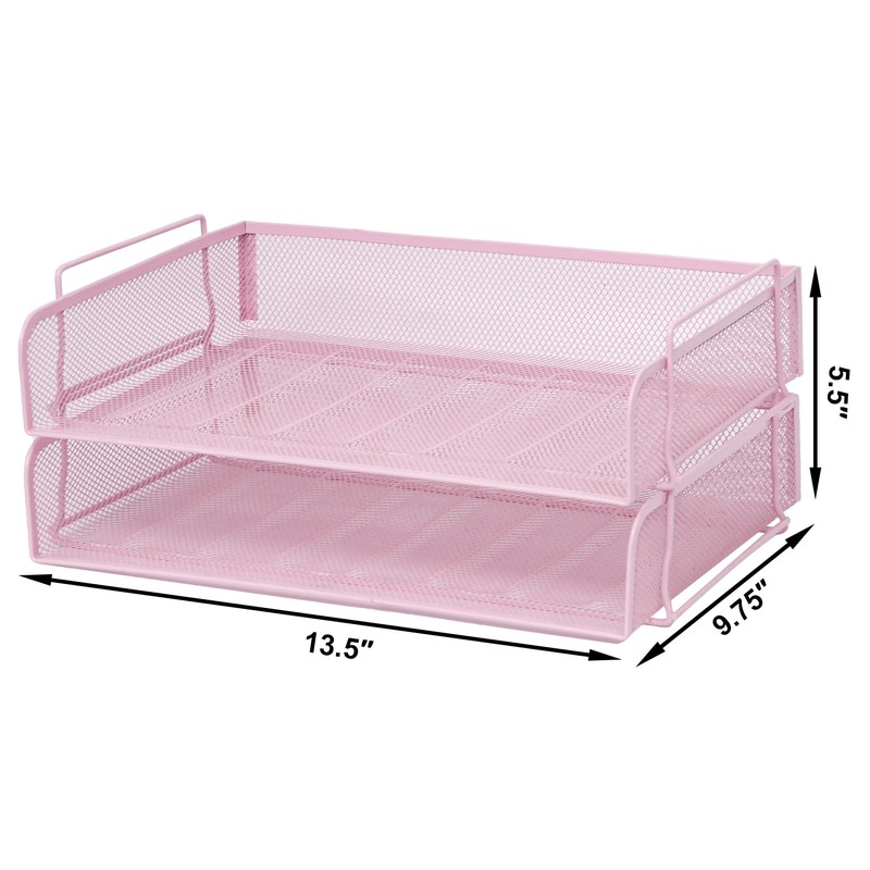 Easepres 2 Tier Stackable Desktop Document Letter Tray Organizer| The Mesh Collection, Pink