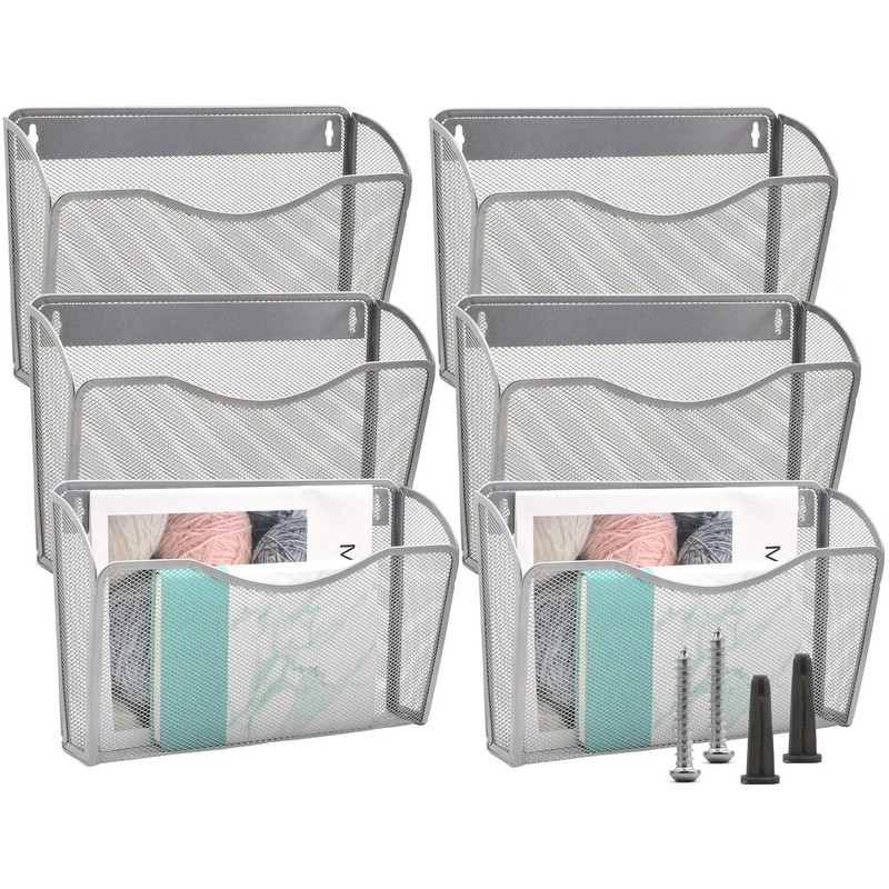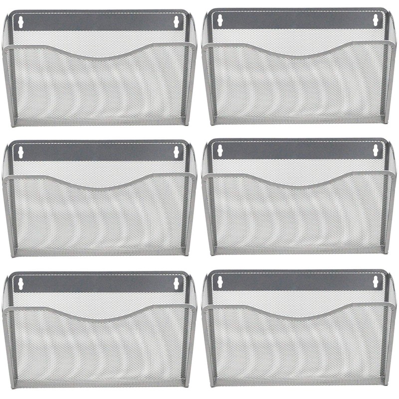 EASEPRES Mesh 6 Pack Wall Mounted File Holder Metal Hanging Vertical Wall File Pocket Organizer for Office and Home, Silver