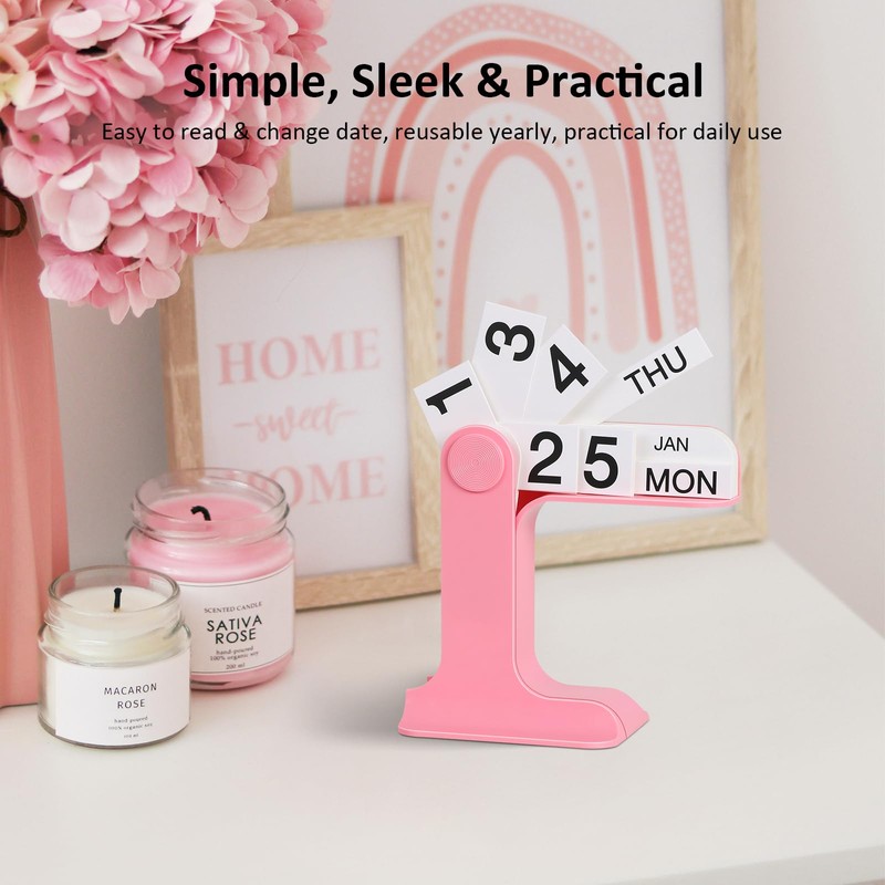 EASEYA Desk Calendar Standing Flip, Creative Perpetual Flip Calendar, Durable PP Material Daily Desktop Calendar with Large Display, Simple Sleek Desk Accessories for Home Office Decor, Pink