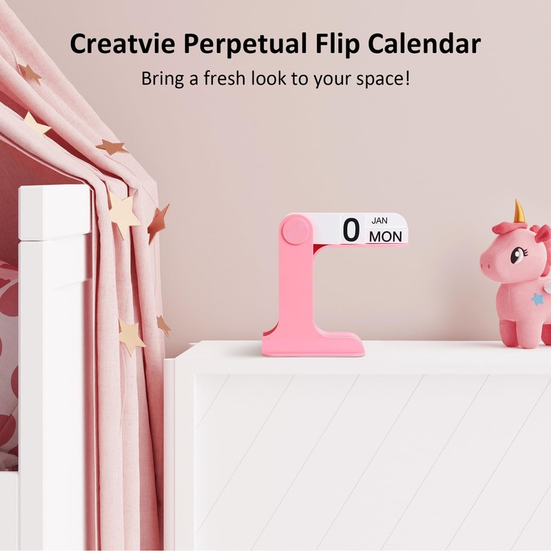 EASEYA Desk Calendar Standing Flip, Creative Perpetual Flip Calendar, Durable PP Material Daily Desktop Calendar with Large Display, Simple Sleek Desk Accessories for Home Office Decor, Pink