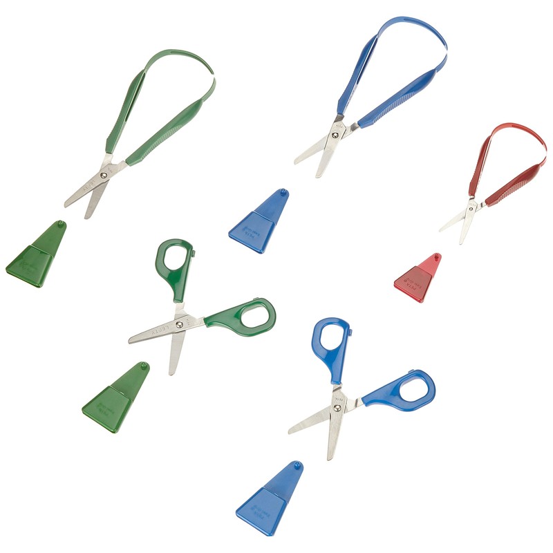 - The scissors, both for left-handed (green) and right-handed (blue) can be found in this set
