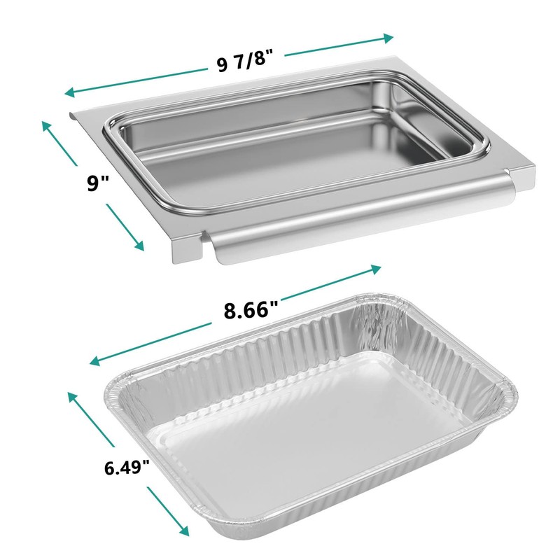 - 【Package Included & Dimensions】Includes: 1-pack aluminum grease Catch Pan and 10 Aluminum Disposable Foil Liner. Catch Pan size: 9-7/8 x 9 inches, Aluminum Drip Pans Liners size: 8.66 x 6.49 inches Make sure you measure the size of your original parts and compare with ours before you order.