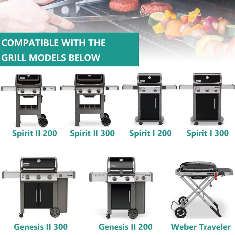 - 【Fits for Weber Spirit 200/300 Models】E210, S210, E220, S220, Spirit E/S 300, Compatible Models 46110001 46502001 46510001 46810001.【Fits for Weber Spirit II 200/300 Models】Spirit II 200 E210, S210, E220, S220, Spirit II 300 E310, E320, E330, S310, S320, S330 Grill Parts. Compatible Models 44000001 48000001 44010001 48070001 48010001 44070001 45000001 49000001 45010001 49010001.【Compatible with Weber Traveler grill】 9010001 gas grill etc.
