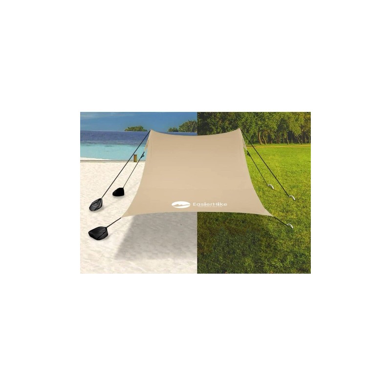easierhike Beach Canopy Windproof, Sun Shelter UPF50+, 6 Sandbags Anchors 10x10 FT 2 Pole
