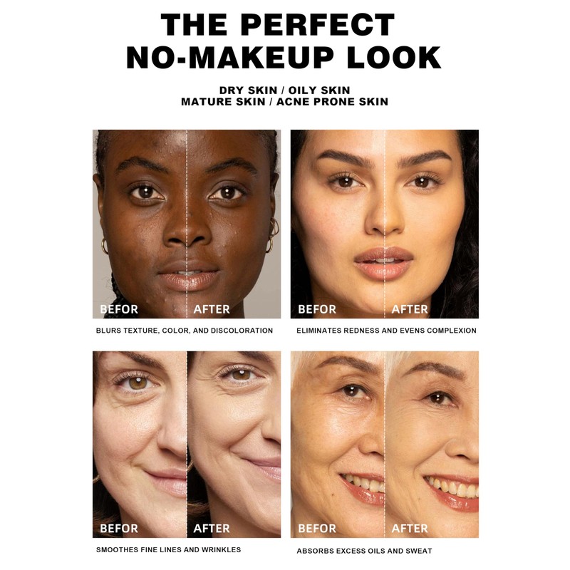 - 【Effortless Application-Poreless Face Blurring Primer】 Achieve your desired level of coverage with ease using our pro tips: for full coverage, use a sponge to dab on the foundation; for a more natural, medium coverage, use a foundation brush in light strokes. Instantly mattifies the skin, reducing oil and shine without drying it out. Start from the outer edges of your face and blend inward for a seamless finish that avoids the heavy makeup look.