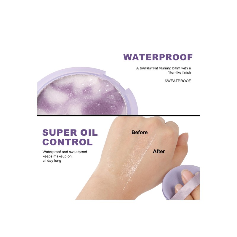 ❥【Portable and Easy To Use】Different from other loose powder or pressed powder, Poreless Face Blurring Setting Balm uses a dry mixture formula, resulting in a jelly texture with no loose powder splattering, caking, or creasing. It can complete the whole process of pre-makeup isolation, makeup setting, and makeup touch-up, meeting a variety of needs. The powder is beautifully packaged and comes with accessories such as a powder puff, which is easy to carry.