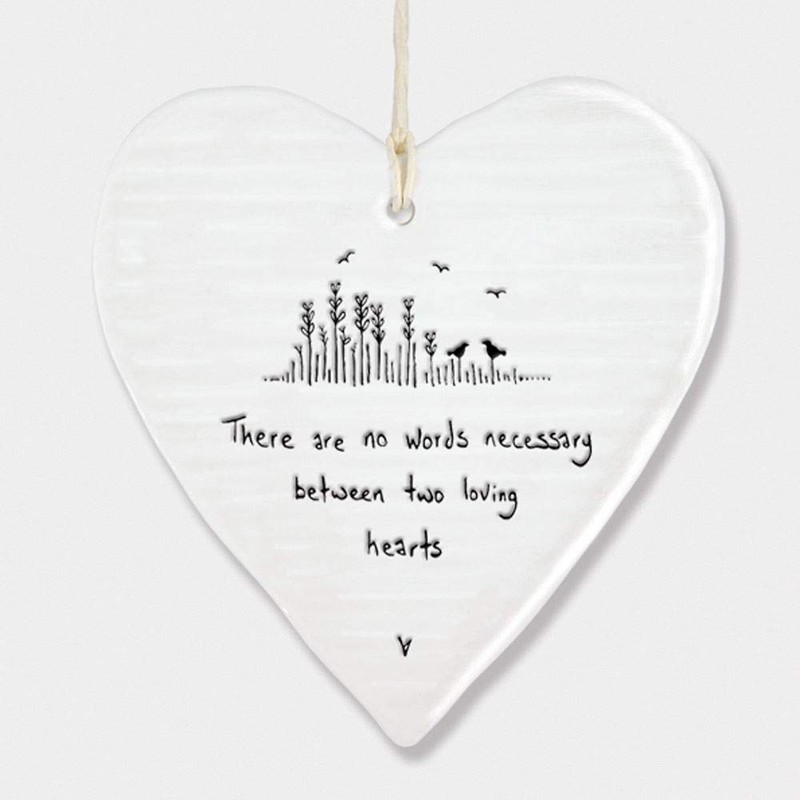 - The heart reads 'there are no words necessary for two loving hearts', in black lettering.