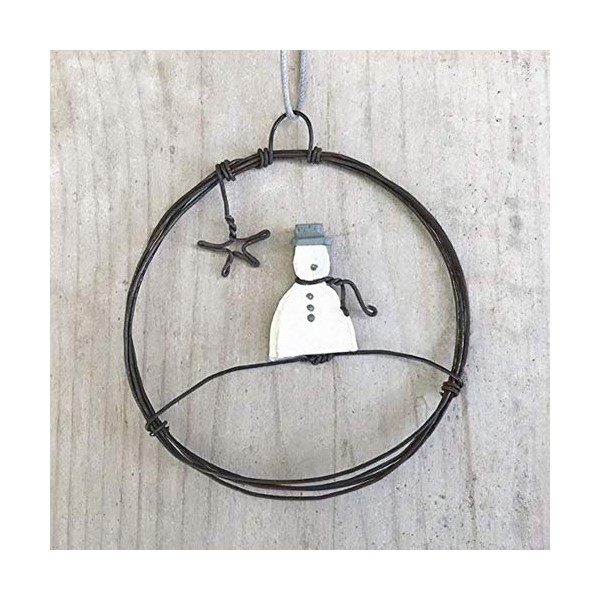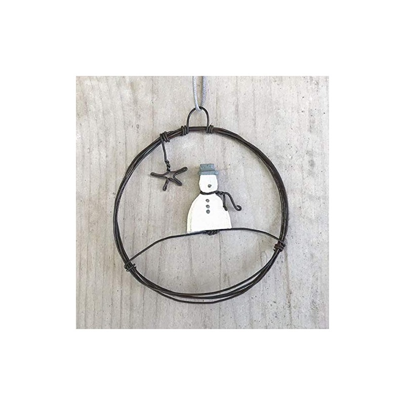 - A wire surround and a snowman and tree with the words Let it snow in the middle.