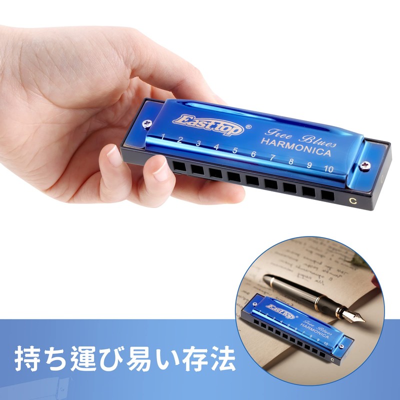 - Professional harmonica for adults: Suitable for the east top 10 hole professional full-scale harmonica, blues, forclock, rock, country, jazz etc. Perfect for professional harmonica players and beginners. This professional blue harmonica has exquisite workmanship, beautiful appearance, accurate tone and responsiveness