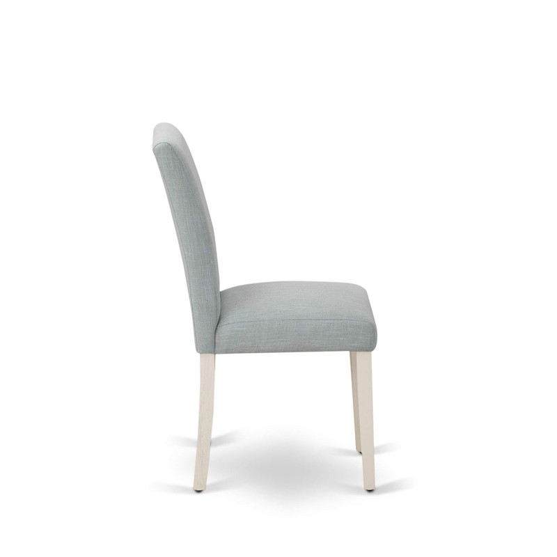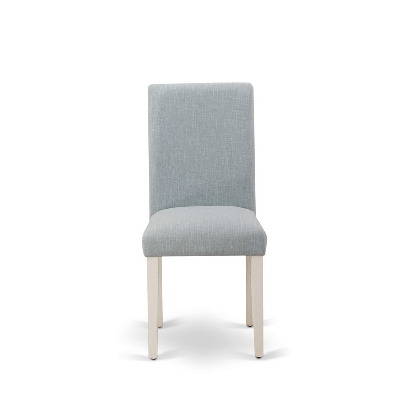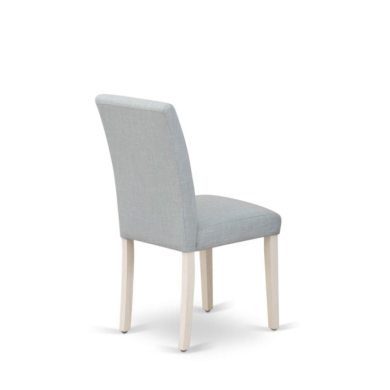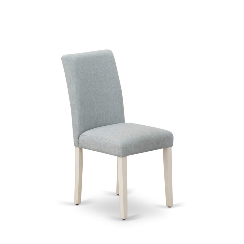 East West Furniture ABP0T15 Modern Chairs Includes Wirebrushed White Wood Structure with Baby Blue Linen Fabric Seat and Simple Back