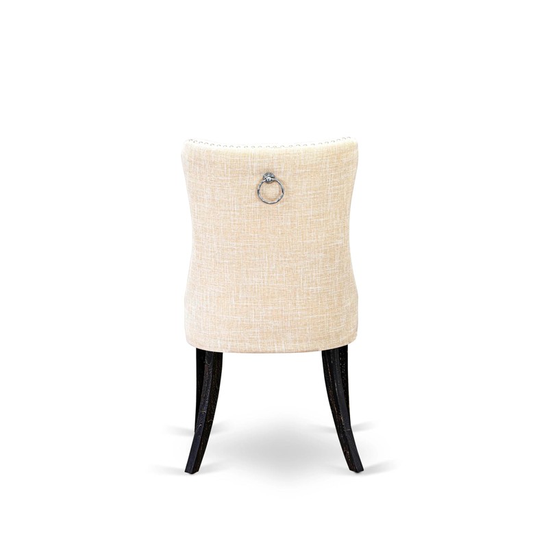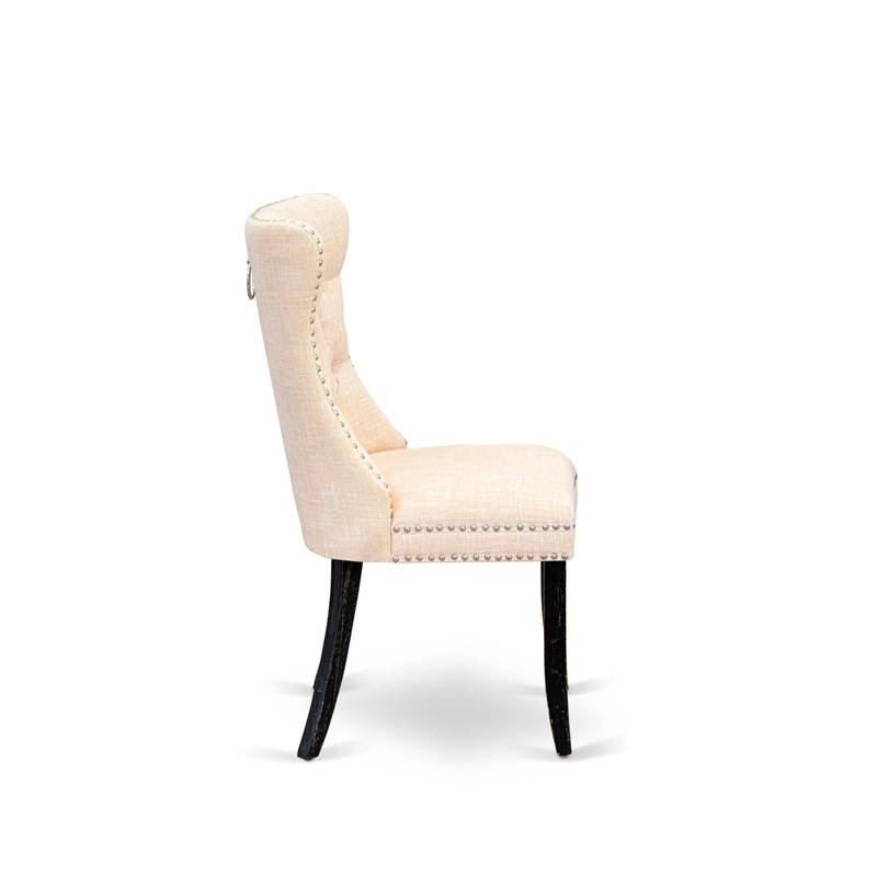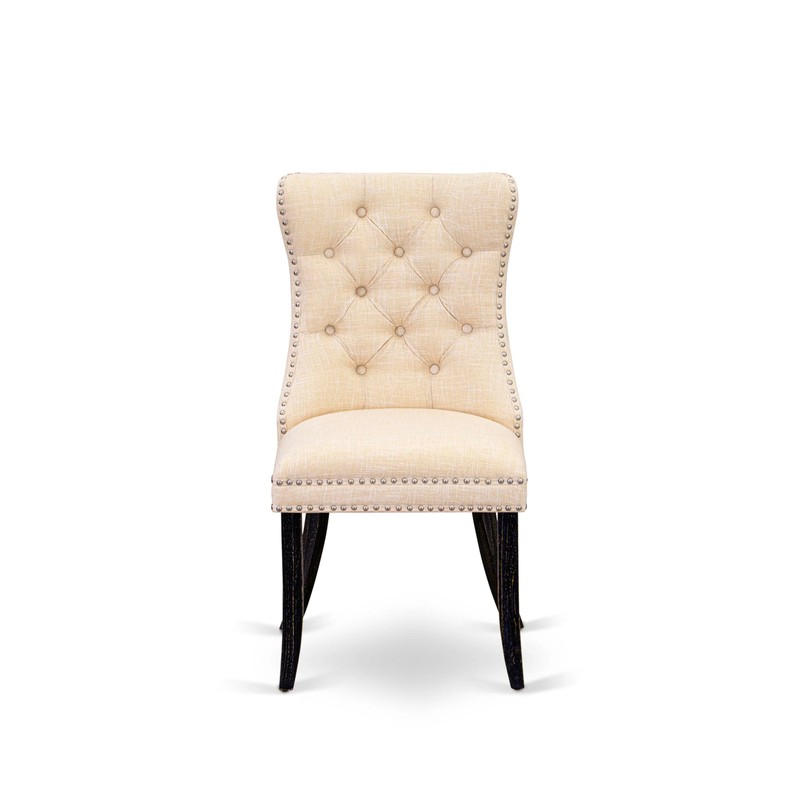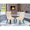 East West Furniture DAPFL32 Dallas Parson Dining Room Chairs - Button Tufted Nailhead Light Beige Polyester Fabric Padded Chairs, Set of 2, Sand Blasted Black