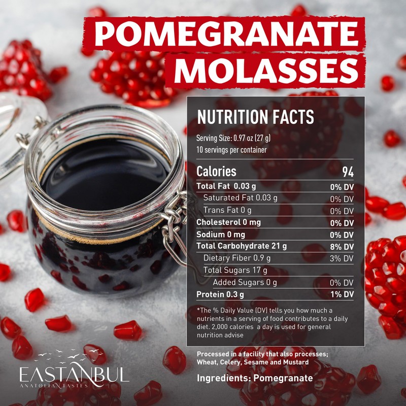 - TASTE PROFILE: Sweet and sour sauce from natural pomegranates. The quality and versatility of the syrup is great. It's light, and adds just the right sweetness. Natural, Vegan, Gluten Free, No Artificial, No Coloring, GMO-Free, no sugar added, pure pomegranate sauce. Enjoy the authentic taste of traditional pomegranate molasses in a convenient, ready-to-use format
