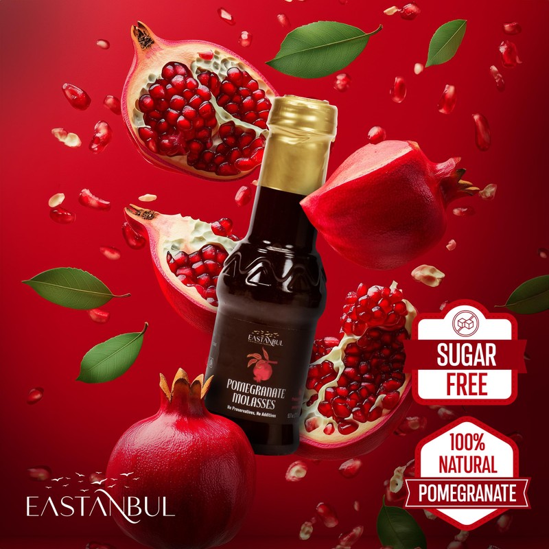 Eastanbul Eastanbul Pomegranate Molasses, 9.7oz, No Added Sugar, Mediterranean Pomegranate Syrup, Nar Eksisi Sweet and Sour Sauce, 100% Natural, Concentrate, Vegan Sauce, Paste, Salad Dressing, No Additives