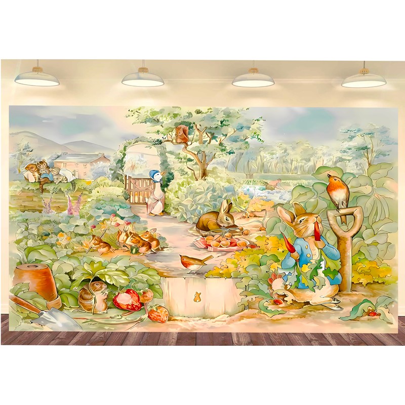 Easter Background Photo Backdrop Backdrop for Kids Birthday Party Cartoon Children Happy Background for Party Wall Decor Rabbit Background 7x5 ft