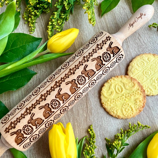 Easter Band Embossed Rolling Pin with Pattern for Homemade Pastries for Easter by Algis Crafts