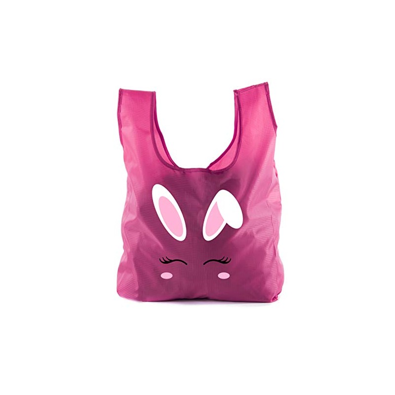 Easter Basket Bags, Bulk Reusable Grocery Bags, Easter Egg Hunt Tote Bags - Bunny Face - Pink CA2650EasterDTG S5
