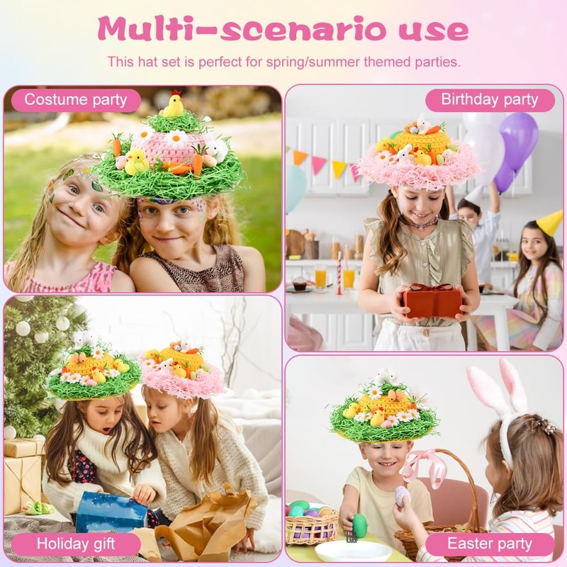 - 【FOR MULTI OCCASION】They are necessary supplies for Easter parties.Also great party favors or props for Easter, tea party, birthday party, school activity, church activity, handcraft class, theme party, beach sun cap,