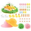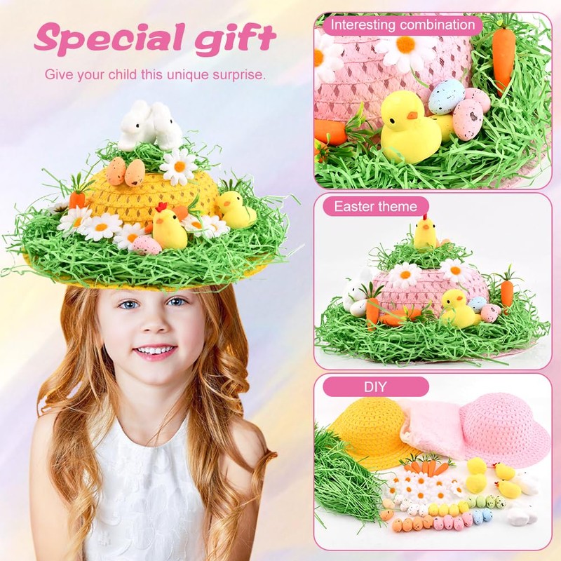 Easter Bonnet Kit -Make Your Own Bonnet Hat Craft Set with Chicks, Bunny, Carrots,Easter Eggs,Grass, Flower for Easter Bunny Theme Party Carnival Birthday Gift