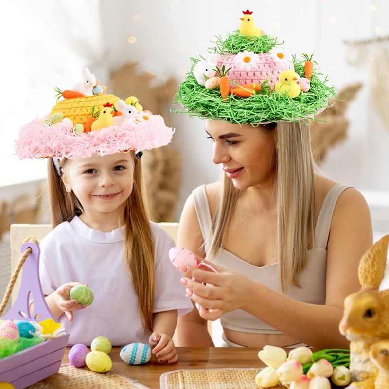 - 【EASTER HAT MAKING】Painting straw hat can use the accessories(included) such as Easter eggs and chicken to use your imagination and decorate these Easter DIY party hats in batches.Easter crafts allow us to make different Easter crafts for Easter party according to our imagination and creativity.