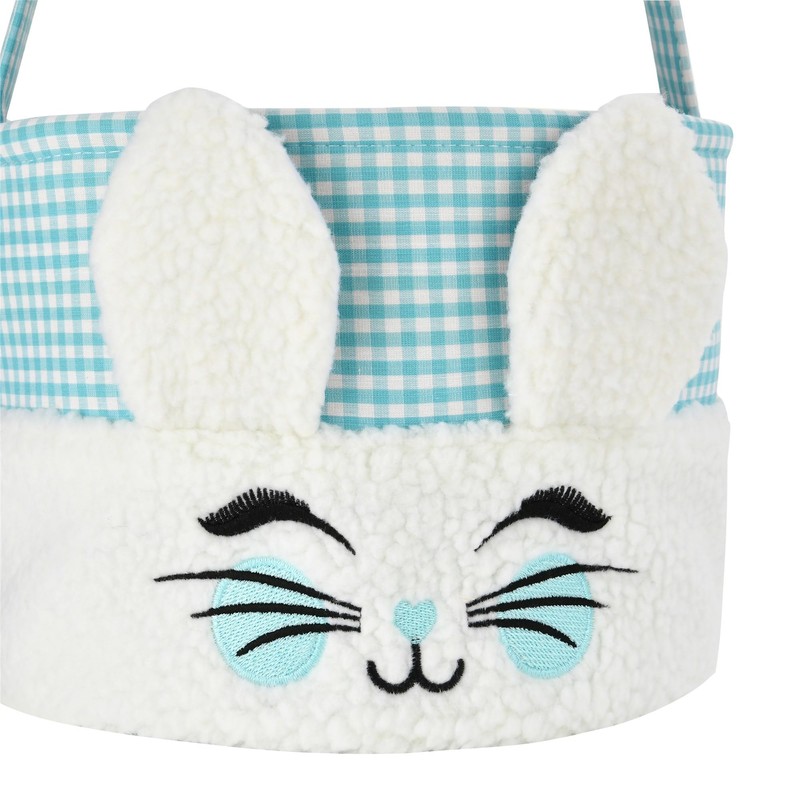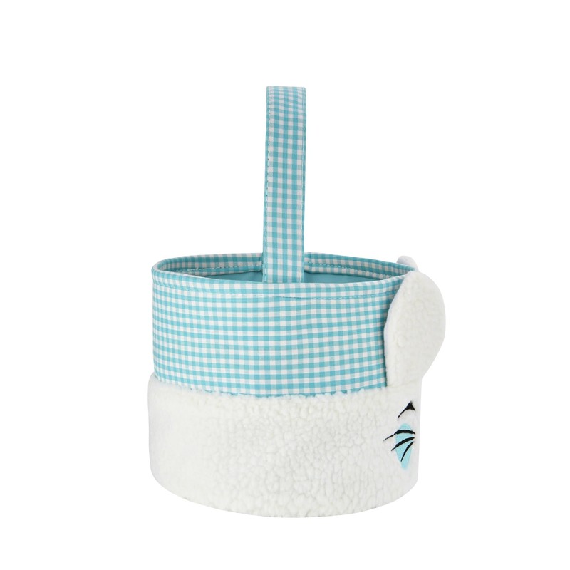Easter Bunny Basket,Cute Plush Easter Bucket with Handle for Easter Party Egg Hunts Decorations Candy Gifts Storage (Blue)