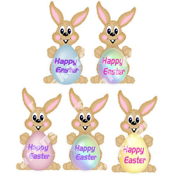 Easter Bunny Card Making Toppers Pastel Craft Embellishments x 5 with Happy Easter Eggs