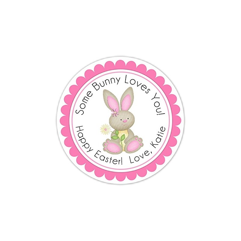 Easter Bunny Labels, Happy Easter Stickers, Pink Bunny (12 count)
