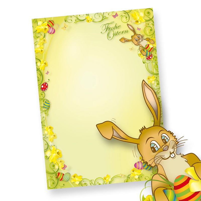 - 50 Blatt Briefpapier DIN A4 mit Osterhase & "Frohe Ostern"