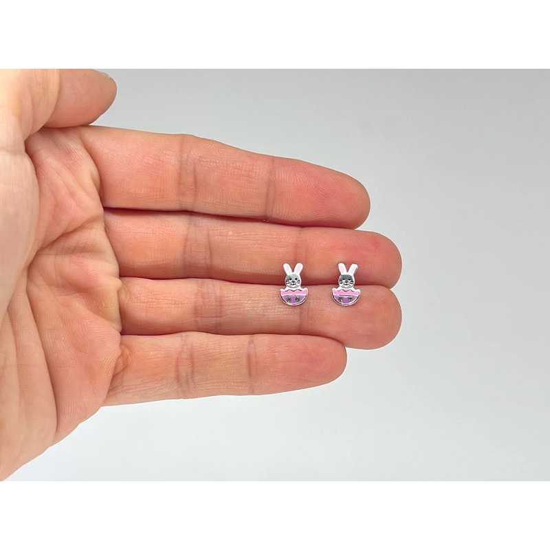 Easter Bunny Rabbit Egg Earrings - 925 Sterling Silver