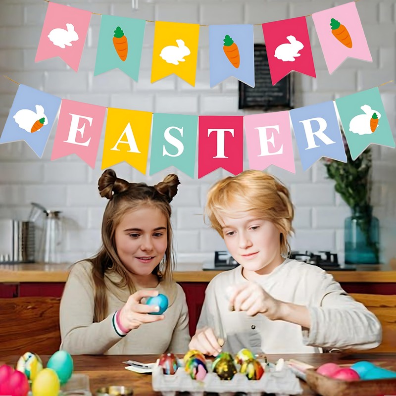 - Complete Easter Decor Enhancement: Our Easter Bunting is the ideal addition to your Easter Decorations collection. It's not just an ordinary bunting; with its Rabbit Bunting, Easter Egg, Bunny, Carrot, and 'Happy Easter' designs, it's a vibrant and essential piece for Home Easter Party Supplies. It allows you to effortlessly transform your living space into a festive Easter wonderland.