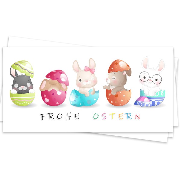 - Design: Easter cards with cute rabbits in one line art, flowers and eggs. The inside is also printed with a small design, but still offers enough space to write on or print them in your own words.