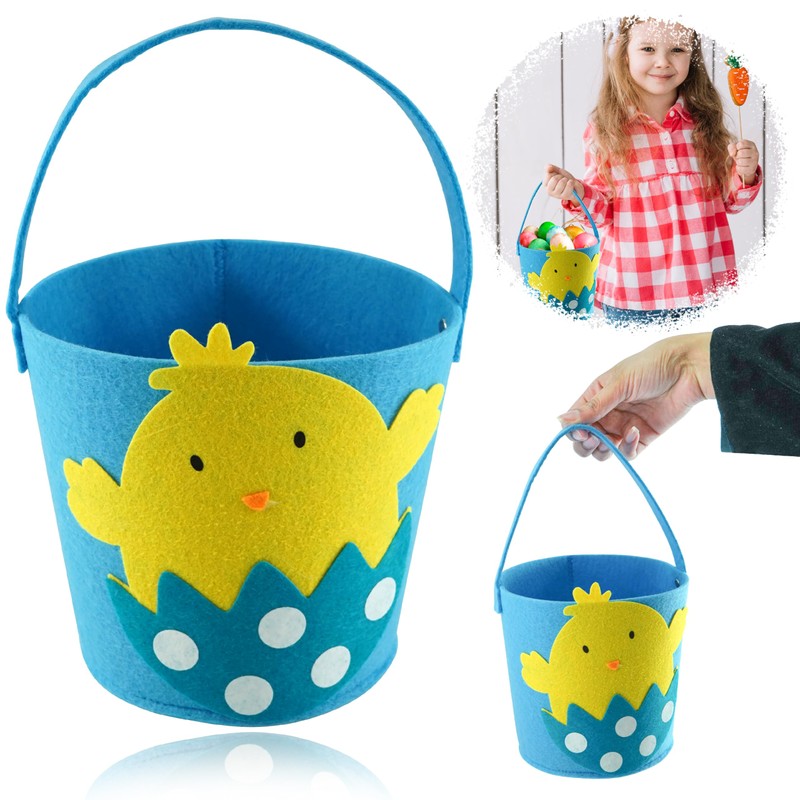Easter Chick Felt Treat Bucket for Children | Reusable Yellow Tote Bag with Handles for Birthday Gifts | Hunt Egg Party Basket for Treats, Size-28cm