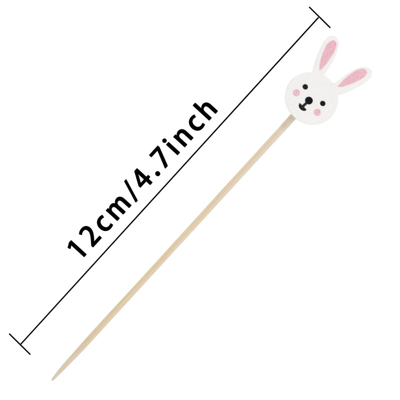 - Charming Easter Decor: Elevate your Easter celebrations with our delightful 4.7-inch bamboo skewers. Each skewer features a wooden decoration at the tip, available in adorable bunny and colorful egg designs. Bring the festive spirit of Easter to your gatherings with these charming accessories.